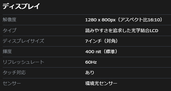 ■7インチ液晶(環境光センサー付き)