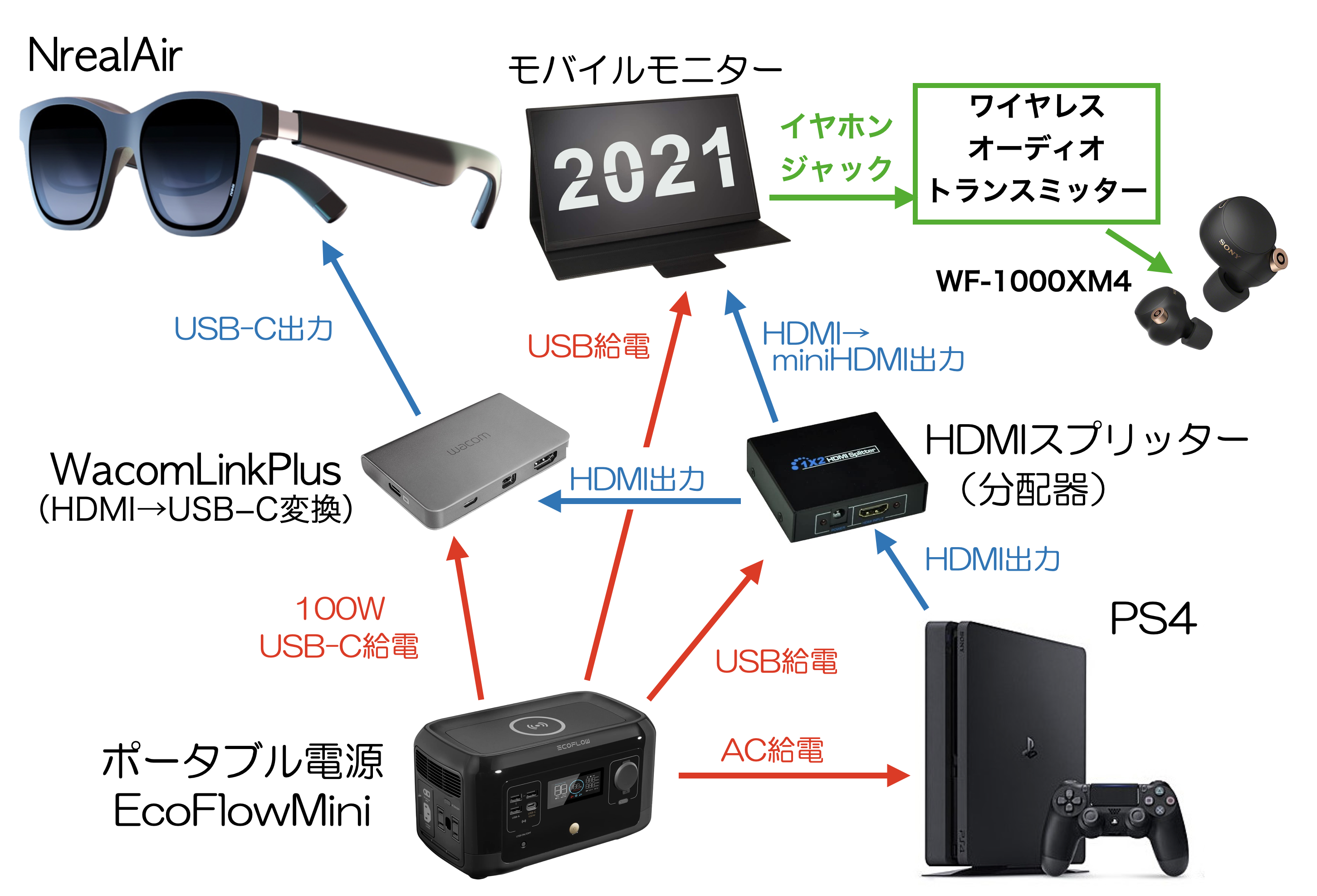 とりあえず大生#NrealAir #NrealAdapter#PS4 #WF1000XM4 pic.twitter.com/TtgjVbQi3C