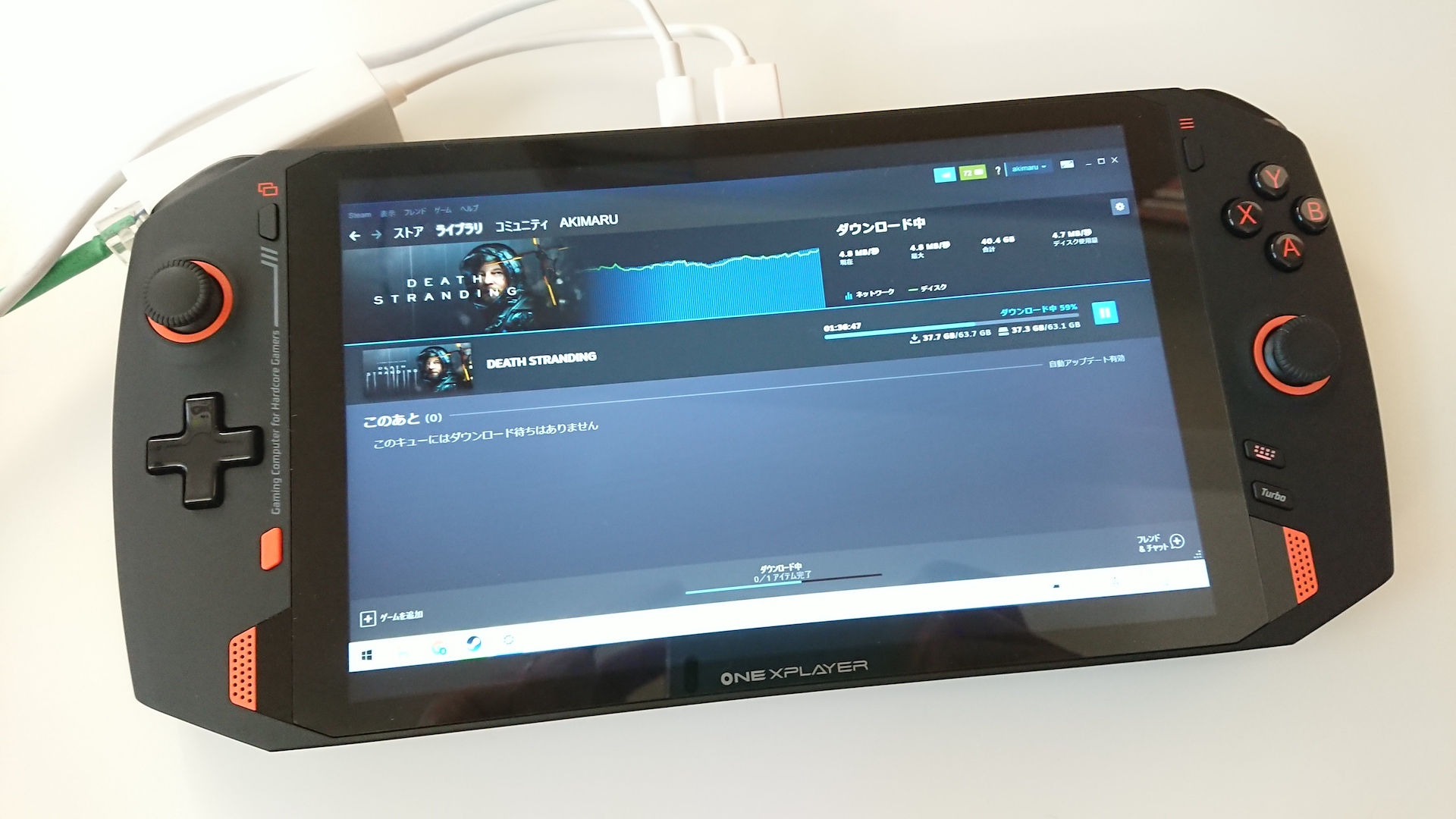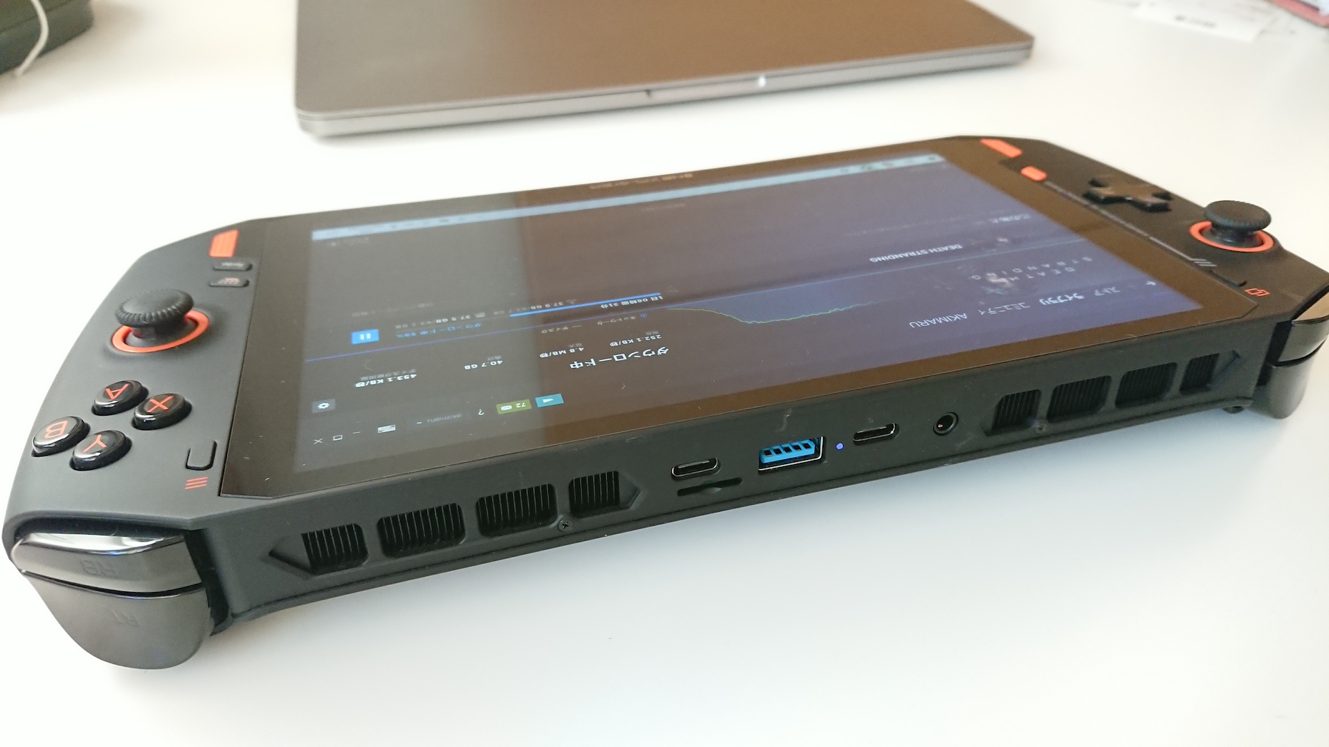 ONEXPLAYERセットアップでやったこと&レビュー 思いかけず、そして無謀にも手に入れてしまったONEXPLAYER、GPD製品もそうですけど、最近の中華UMPCはデザインや作り込みもかなりレベル高いですよね。 デザイン性なんて日本のメーカーは相当遅れてる気がする…。 基本国産愛好者だったんですが、最近はそうでもなくなってきた。とても残念です。 ということで、入手した初見での感想などざっくりレビューと最初にセットアップでやったことをまとめました。 ■ONEXPLAYERざっくりレビュー 普通にカッコいいですよね。画面サイズは8.4インチ! これまで使用していたGPDWin2と比べると相当デカい! まぁ8インチって普通にタブレットサイズですからね…。 それにともない本体サイズもかなりデカい!!(288✕130✕21mm) 重量もそれなりに…^^;(820g) 上面にはThunderbolt対応USB-C✕2個、USB-A✕1個、イヤホンジャック、microSDスロットもあります。排気口もかなり大きくて冷却効果はバッチリです。 左側コントロラー部分。 アルプス製ジョイスティックは押し込みも可能で、操作性も良いです。 画面左上(左スティックの右上)の本体色と同じ色のボタンはいわゆるSELECTボタンとして機能。 十字キー右下のオレンジのボタンはホームボタンで、押すとデスクトップが強制表示されます。 そして長押しするとXboxGameBarが表示されます。 このホームと右側のボタンを組み合わせると、タスクマネージャー起動やスクショ撮影もできるのが便利です。スクショはランチャーに依存しないで撮れるので楽で良い。 (SEKIRO、JUST CAUSE3など何故か撮れないタイトルもあります) 右側スイッチ類。 上はいわゆるSTARTボタン。 ジョイスティックの下は上がソフトキー出現ボタン。 長押しするとマウスモードになって、左ジョイスティックでポインターを動かしてAが左クリック、Bが右クリックになります。この辺はGPDWin2よりやりやすい。 画面左のホームと同時押しでタスクマネージャ起動。 下のボタンはTurboボタンで、押すとTDPを20W→28Wにブーストアップできます。 重いタイトルだとそれなりに効果ありますね。 そして、ホームボタンと同時押しでスクリーンショットを撮れます。わざわざソフトキー出したりしなくてもパッとすぐ撮れるのが良いです^^ 本体裏側。マット仕上げで安っぽさは微塵もないです。 給気口も大きいの2つ。ファンが2つあるのはスゴイ! 中央上部にある丸いのは指紋認証付き電源ボタンです。 右手側R2トリガーの内側下あたりに音量調節ボタンがあります。 すこし硬めでカコンカコン押す感触で、間違って押すことはまず無いですね。 反対左手側にはミュート(消音)ボタン。 長押しすると静音モードでファン回転数が落ちて静になるとのこと。 確かに静かになるんですが、静音モードになっているかの表示がどこにもないので切り替わってるか不明…w 裏側下部にはアルミ製の頑丈そうなキックスタンドが付いてます。 ボディが大きくて置いた状態でプレイすることも多いし、ゲームをダウンロードしている間とかは立たせておいたほうが排気効率も良いので、とても助かります。 無段階に調整可能で、動かす感触も硬すぎずゆるすぎずちょうど良い! 専用ケースに入れたところ。サイズはかなりキツキツですね。擦れるところの塗装が剥げそうな位…w まぁでも純正でピッタリサイズのがあるのはありがたい! ということで、ゲームのダウンロードなどいろいろとセットアップしています。 最初にセットアップとしてやったことなどは以下の通り。 ■その1 SSDパーティション統合 ストレージのSSDが1TBあるんですが、何故かCとDに500GBずつ分かれてるので、それを結合して1TBとして使えるようにしました。 やり方は鴨屋さんに詳しく書かれています。 ホントに何故分けてあるんでしょう? ■その2 各種ゲームランチャーのインストール 続いて色々なゲームのクライアント、ランチャーなどを入れます。 安く買おうとすると、Steam以外のプラットフォームも利用することになるので、結構色々使ってます。 ・Steamクライアント →言わずとしれた奴 ・EpicGamesLauncher →無料配布のがたくさん溜ってるので ・UBI Connect →Farcryとか ・GOG Galaxy →CyberPunkはこちら ・Xboxアプリ →GamePassのPC版とかクラウドも ・RockstarGamesLauncher →GTAとか ・Origin →EA系のTITANFALLとか ■その3 電源オフ&再起動ショートカット設置 小技ですが、デスクトップショートカットで「シャットダウン」「再起動」を作ってます。 ワンクリックでできるので、これが意外と便利。 ■その4 ディスプレイ解像度を下げる ディスプレイの解像度を下げました。 ONEXPLAYERは液晶の解像度が2560*1600pixもあるんですけど、個人的には正直こんなに要らないんですよね…。 これはCyberPunk2077をプレイしてい時に少し動きがモッサリしていたので、調べてみたらそもそもの解像度を下げれば改善されるとのことだったので試してみました。 デスクトップ右クリックからのディスプレイ設定で「ディスプレイの解像度」