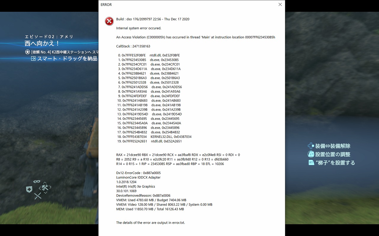 当初は起動時にクラッシュしていたんですが、2022.12月のIntelグラフィックドライバーに更新したら起動してプレイできるようになりました。