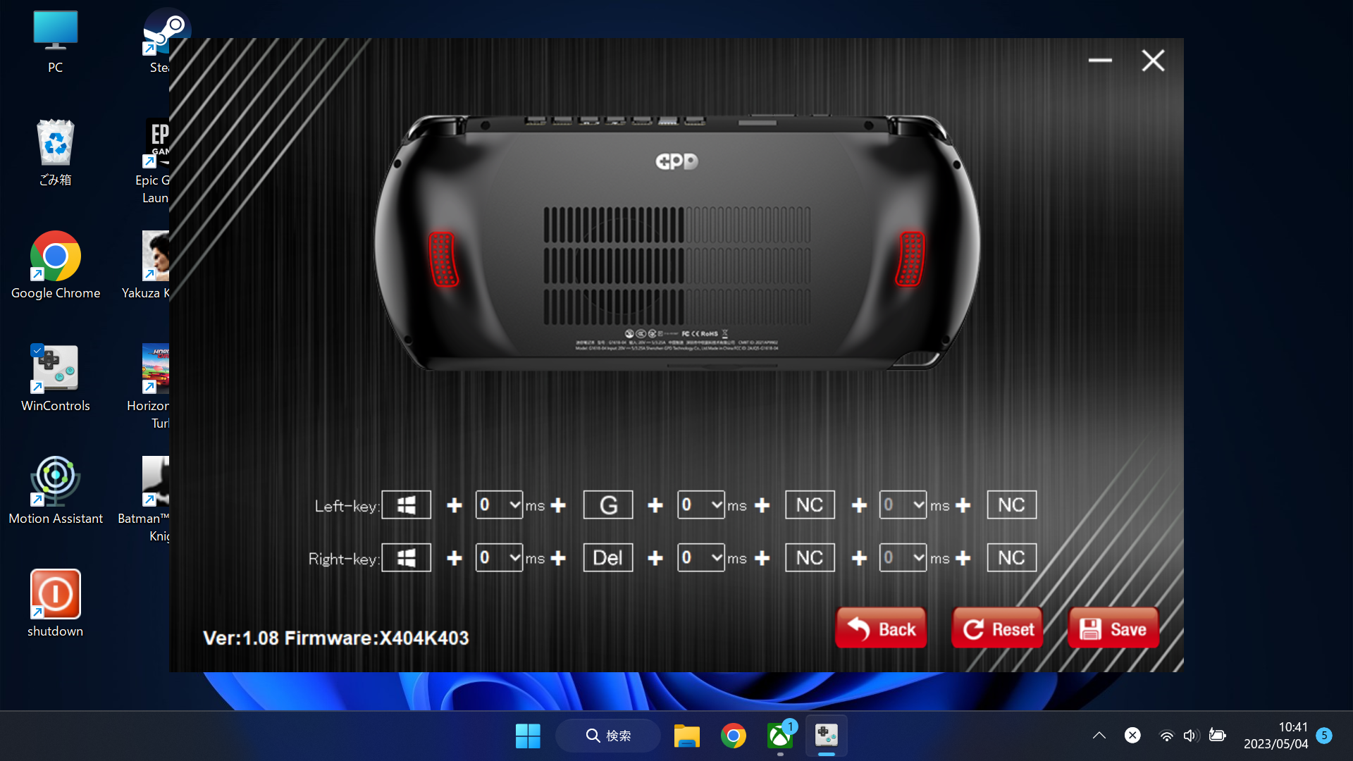 背面ボタンですが、GPDWIN4は裏側に左右計2つの追加ボタンがあってそこにキーボードショートカットなどを設定できるんですよね。
