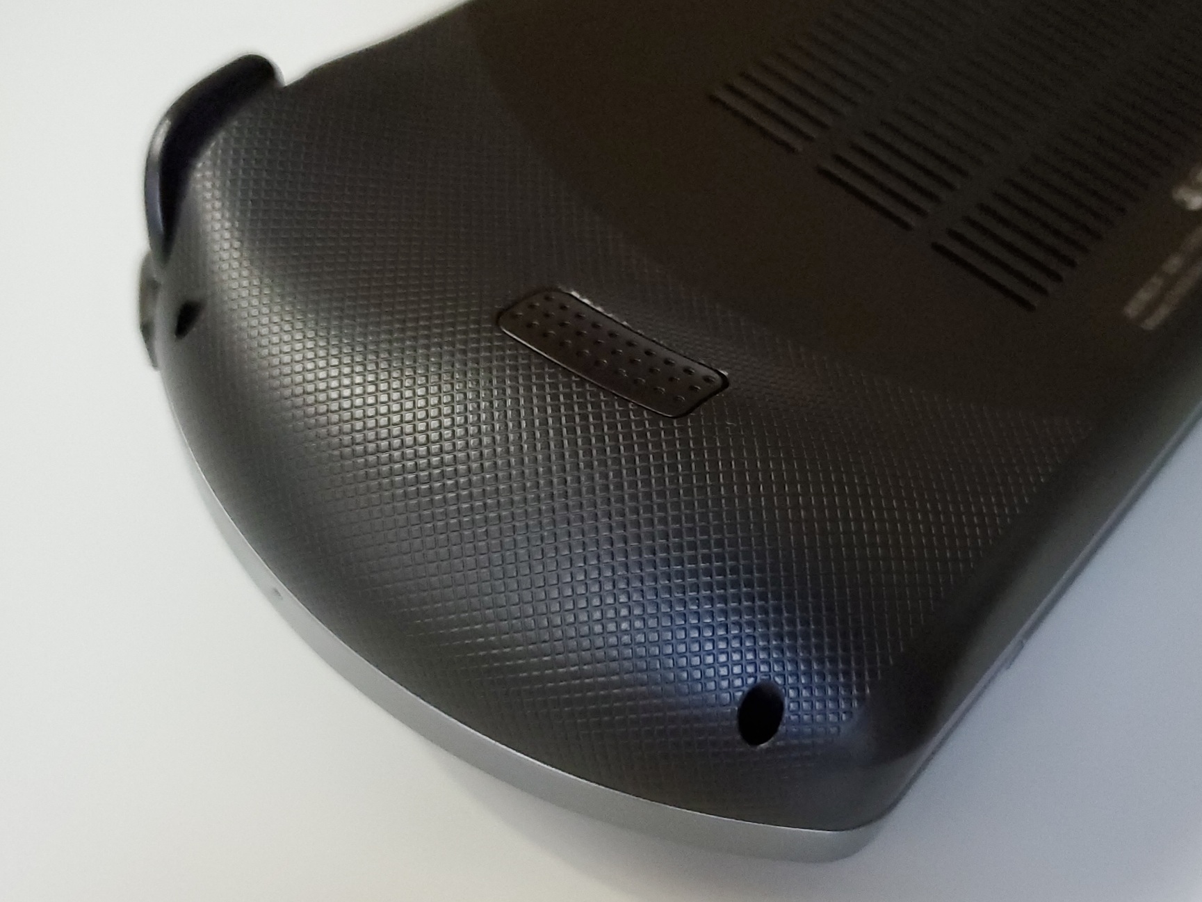 裏面はこんな感じ。背面ボタン2つと冷却ファンの給気口があります。