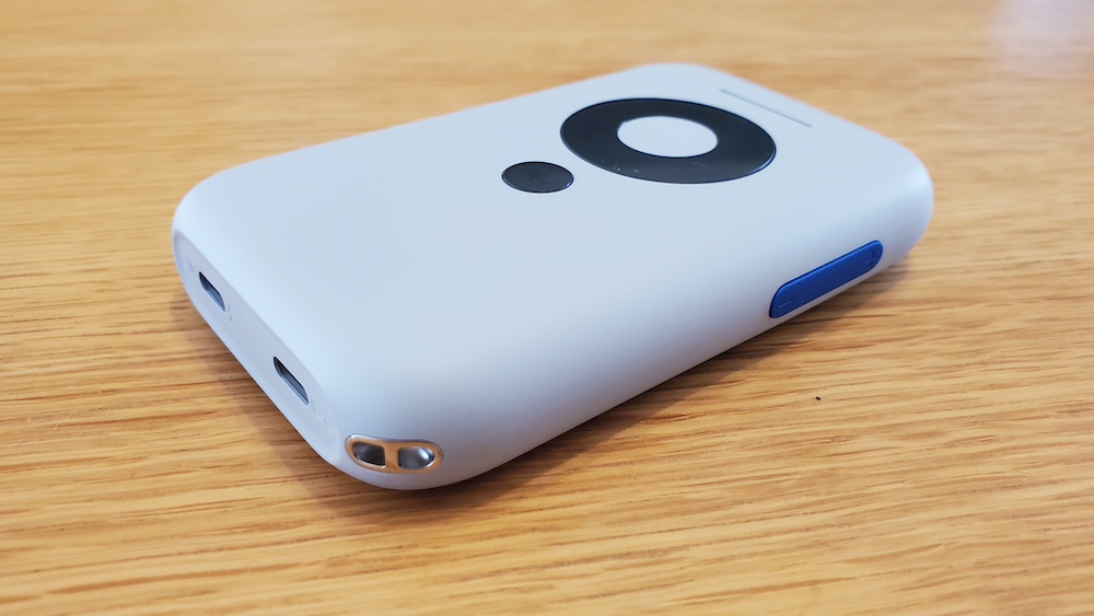 本体右側には音量調整ボタン、右下にストラップホール、下部にはUSB-Cポートが2つ。