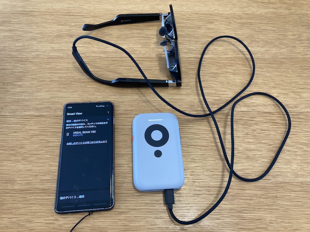 まずはXreal社がおそらくメインの使い方として想定していると思われるスマホとの無線接続。