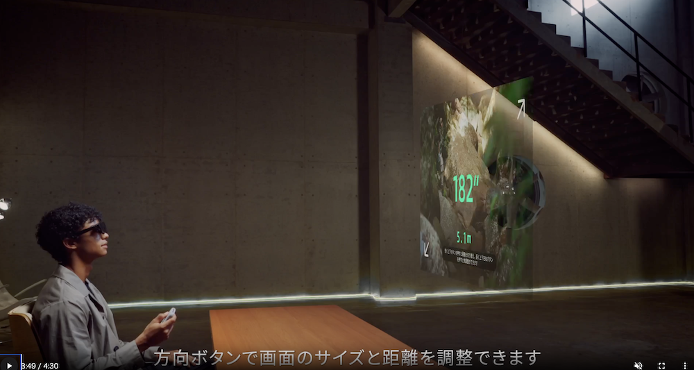 XrealAir単体だと、4m先にある130インチ画面を見ているイメージとのことでしたが、Beamを使うとその画面サイズを拡大&縮小できるようになります。