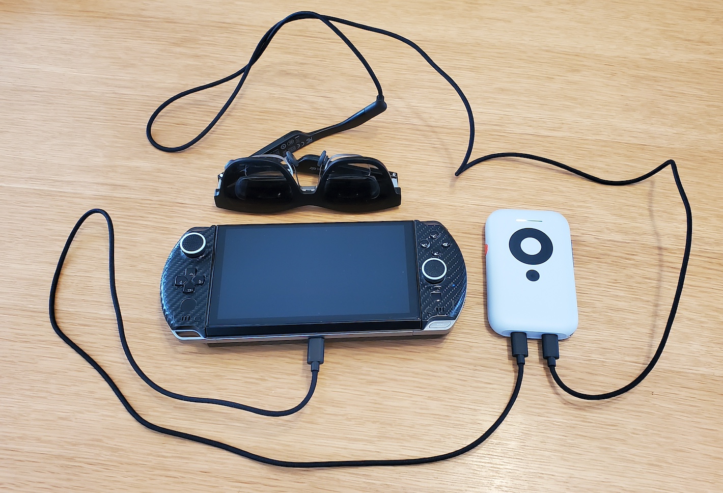 今までXrealAirを直接GPDWIN4に接続していましたが、XrealBeamを間に挟んで接続します。
