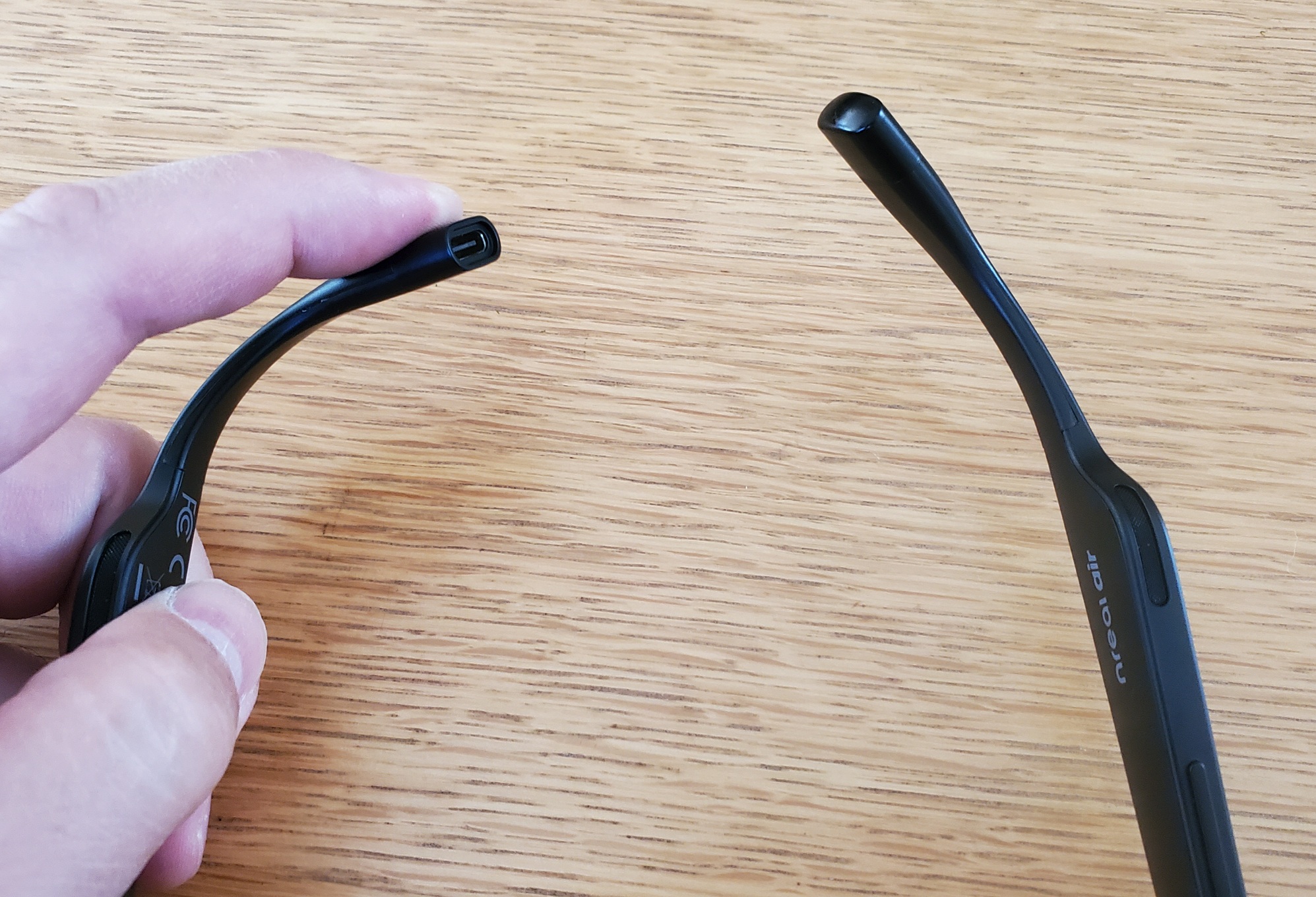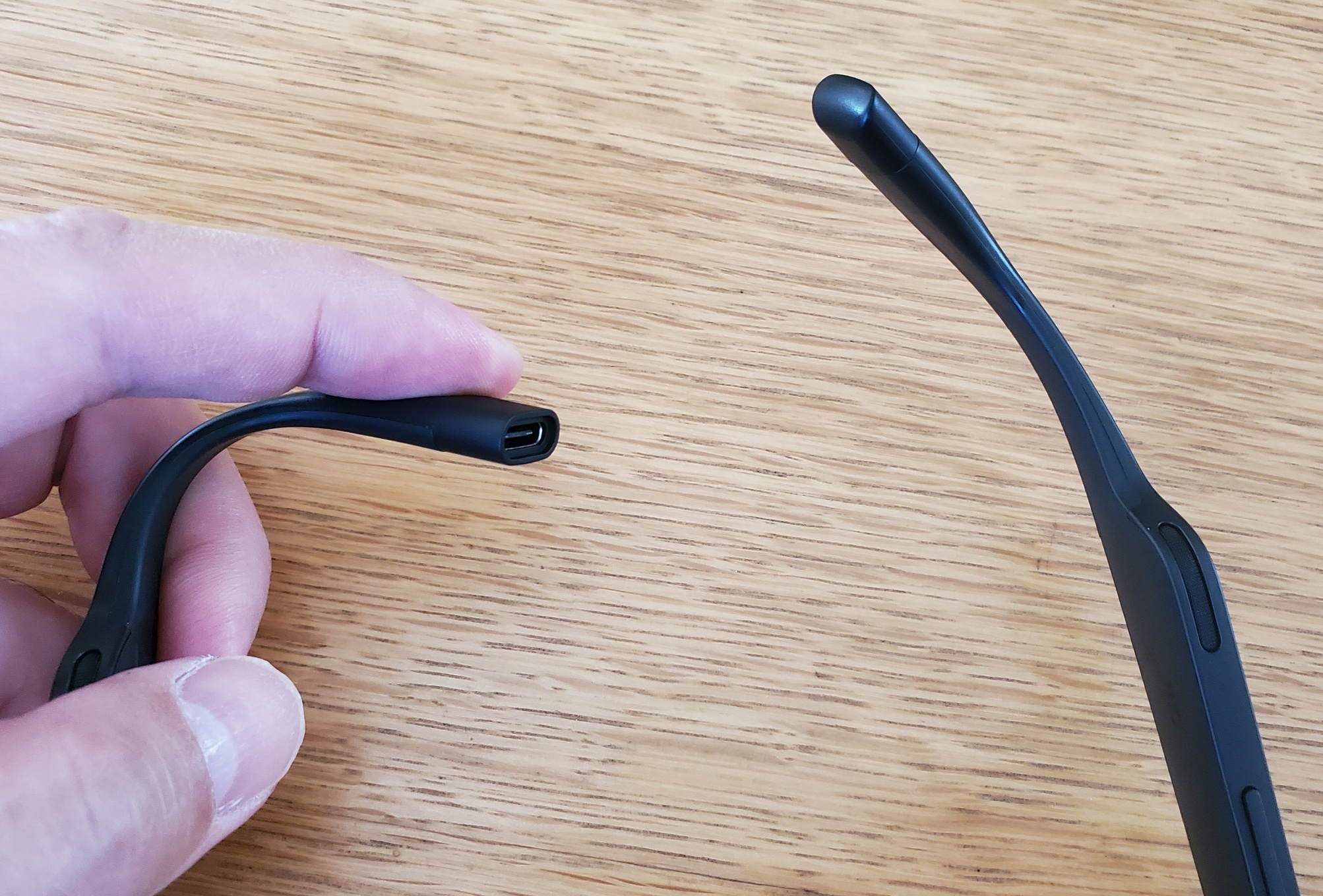 テンプル上部にあるスピーカーから逆位相の音を出して音漏れ軽減をしてくれる機能もあるようです。