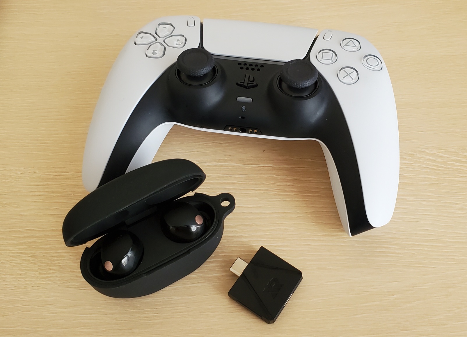 PS5でWF-1000XM5を使用する/BluetoothトランスミッターXROUND XRD-XT-01 PS4でもそうだったんだけど、PS5でもBluetoothイヤホンに音声出力できないんですよね。 ハード的にはBluetooth機能はあるし、Switchとか他機種ではフツーにできるのに何故…とずっと思い続けてるんですけどね… で、普段はコントローラーのイヤホンジャックに有線イヤホン接続してるんですけど、やっぱ配線邪魔くさいし、音質とかノイキャンとかWF-1000XM5好きなのでできれば使いたいので、ずっとPS5で使えるBluetoothトランスミッターを物色してました。 USB-Aポートに挿すドングルタイプとかイヤホンジャックに挿す充電が必要なタイプとか、5〜6個は買ったけど、音質がひどかったり充電が面倒くさかったり、コレってのがなかなか無かったんですけど、ようやくちゃんと使えるのに辿り着きました^^ それがこの XROUND XRD-XT-01 であります! XROUND Bluetooth 5.0 トランスミッター XRD-XT-01 そもそも一般的なワイヤレスイヤホンではQualcommのAptXという音声圧縮コーデックを採用していることが多くて、それに伴ってトランスミッターもAptXをメインにしてるものが多いんですよね。 AptXは低遅延なAptX LLとか、高音質なAptX HDとかバリエーションもあって、それなりに優秀で普及もしてるのでトランスミッター側もそちらに対応しているものが多いのは当たり前なんですけど、自分が愛用しているソニーのワイヤレスイヤホンWF-1000XM5は、音声コーデックが少し特殊で、AptXは採用せず、SBC/LDAC/AAC/LC3という独自路線を含めたAptX以外のコーデックを採用してるので、対応しているトランスミッターが少ないのです。 その中でもSBCという規格は結構一般的で選択肢は多いのでSBC対応のものを色々買ってみたんですが、相性なのかなんなのか、WF-1000XM5とか前モデルのXM4で使うと、音質が酷いというレベル以前のこもった音というか乱れた音声になってしまって、とても使い物にならなかったんですよね。 そこでずっと低遅延なLC3とかAAC対応のトランスミッターを物色し続けていたんですが、これがなかなか出回っていない。 ※LDACは超高音質なハイレゾ規格なので遅延を避けたいゲーム用途には向かないため除外(てか無い) そんなこんなで暇を見つけては物色していたところ、AAC対応も謳っているこちらのXROUND XRD-XD-01にある時たどり着いた訳です。 Creativeの「BT-W3X」というのもPS5でWF-1000XM5を使えるというレポートはあるんですが、比較的低遅延なAACは非対応でAptXメインなので、ゲームでの利用はどうなんだろうと手を出せず悩んでたんですよね。 こちらもも5000円以下なのでダメ元でイッちゃっても良い気もするんですが、性根がケチなもんで踏ん切りがつかなかったw てなわけで、勢いでポチったXROUND XRD-XD-01が着弾。 パッケージとかは流石に安物のトランスミッターとは一線を画す感じ。 ドングル本体のほか、USB-A→USB-C変換アダプタと3.5mmジャックに挿すマイクも付属。 日本語説明書もついてます。 サイズ感はこんな感じ。思ってたほど大きくない。質感も悪くない。 PS5本体のUSB-Cポートに挿すと、まぁちょっと邪魔くさい感じかなw 持ち運び派としてはぶつけて本体壊れたら嫌だなという懸念もあり挿しっぱなしにはしたくないかなと思った(持ち運ばなければ無問題) 接続は極めて簡単で、本体左右にあるボタンのいずれかを押しながらペアリングすればOK。 その後は起動とともに自動的に接続されました。 で、問題のゲームプレイ時における遅延とか音質ですが、 これが今まで悩んでたのを全て払拭するレベルで良い感じです✨ CoDのようなFPSも違和感なくプレイできたし、まぁ個人的な感想ですが遅延はほぼ分からないレベル。素晴らしい。 PSではずっっっと有線イヤホンを使ってた身としては、非常に有り難いアイテムとなりました! てか、ハード側で自社のワイヤレスイヤホンくらい対応しろよ! …とちょっとだけ言いたい気持ちもなくはないw なんにせよ、これからはPS5でもワイヤレスイヤホンWF-1000XM5を使えるようになったので、これまで以上にゲームライフが捗ります! NXROUND Bluetooth 5.0 トランスミッター XRD-XT-01 PR